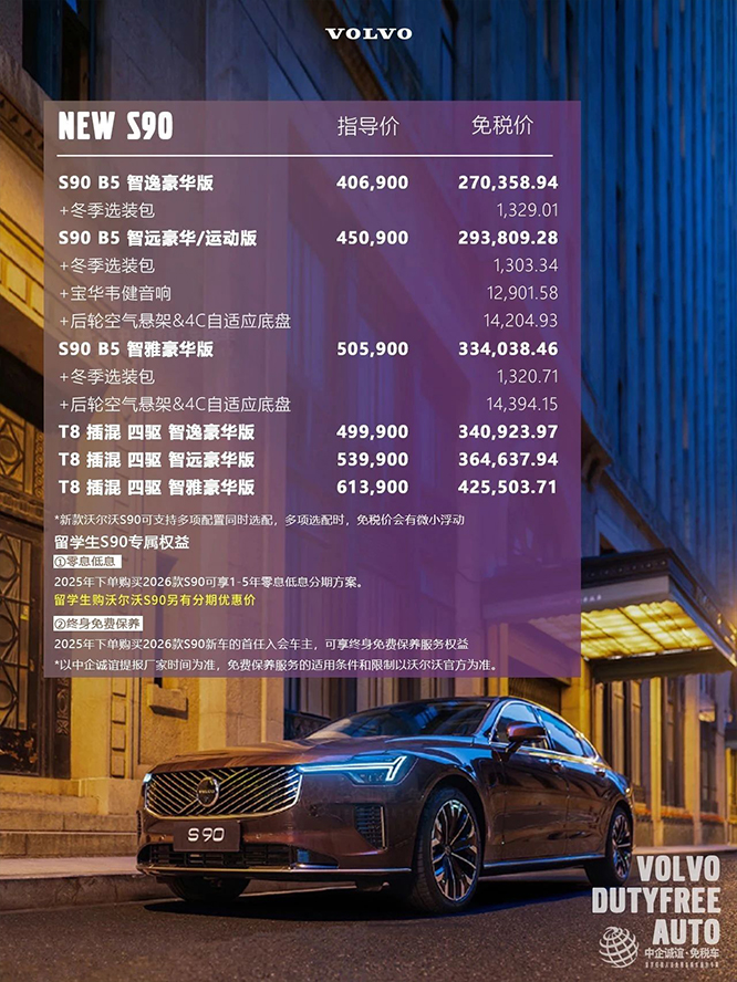 前几天刚更新了2026款S90留学生免税车价格政策