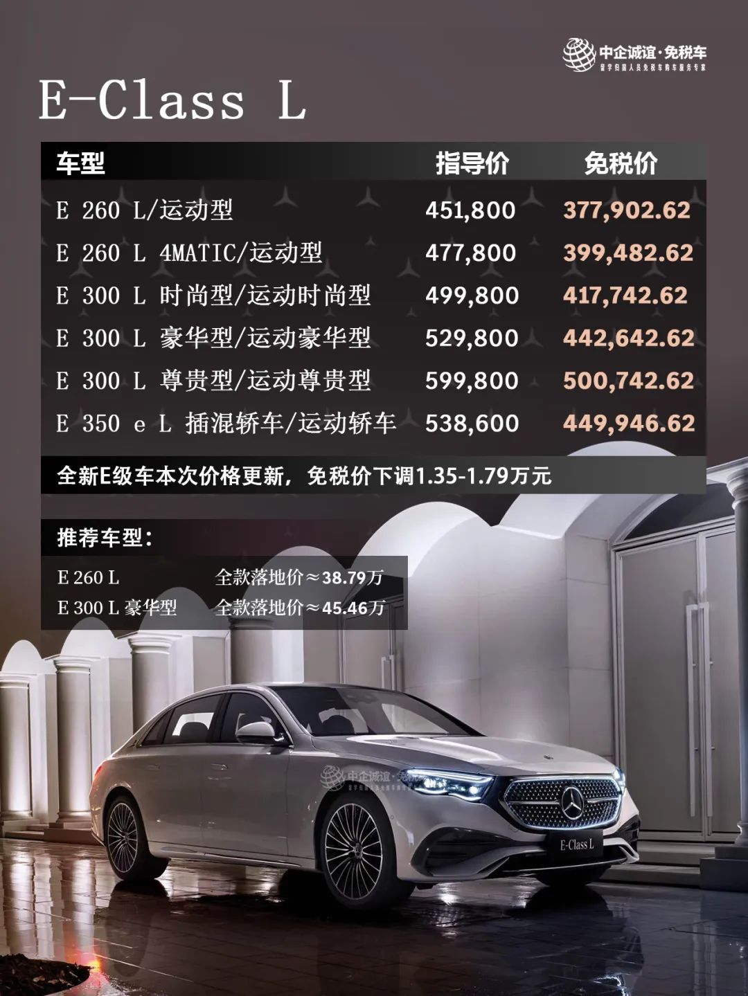 逆势下调 | 留学毕业星辉礼遇 | 奔驰留学生免税车价格更新!