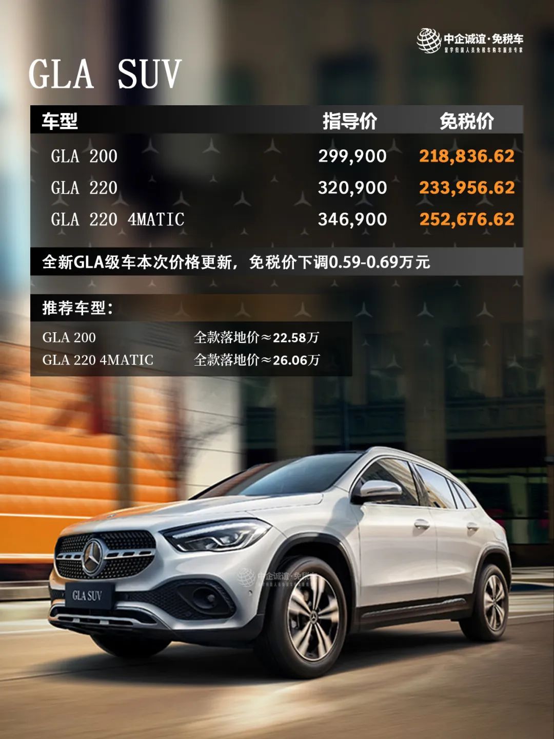 中企诚谊留学生免税车奔驰GLA级
