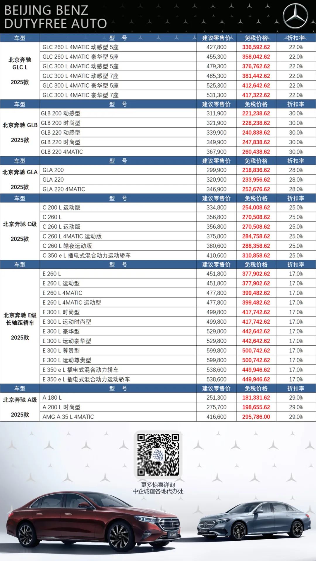 2.奔驰留学生免税车各车型免税价