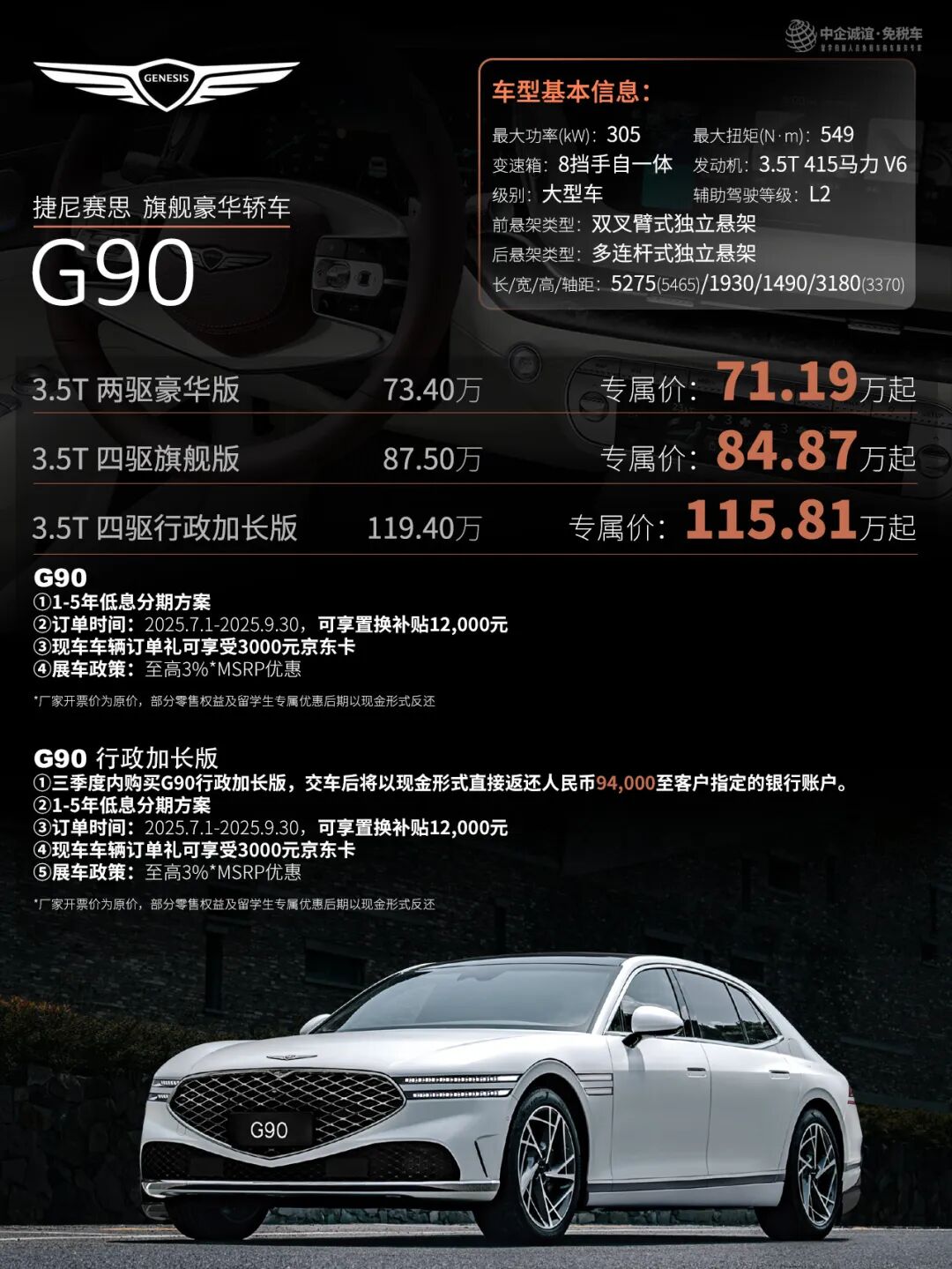 捷尼赛思G90是捷尼赛思品牌的旗舰豪华轿车,号称韩版迈巴赫