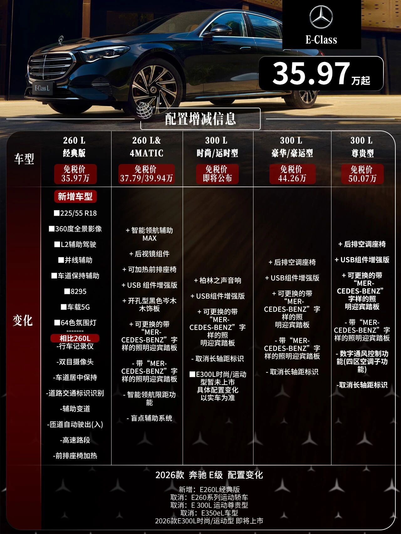 ■E260L新增经典版;取消E260系列大标车型