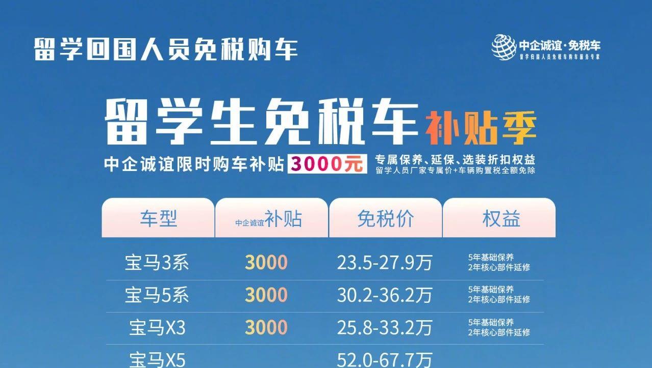 主要车型补贴+3000、再降31000留学生免税车政策再升级